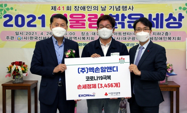 Àü´ÞµÈ ¹°Ç°Àº ÃÑ 2õ¸¸¿ø »ó´çÀ¸·Î ´ë±¸ Áö¿ª Àå¾ÖÀÎÀÇ Äڷγª19 ±Øº¹À» À§ÇØ Áö¿øµÈ´Ù.