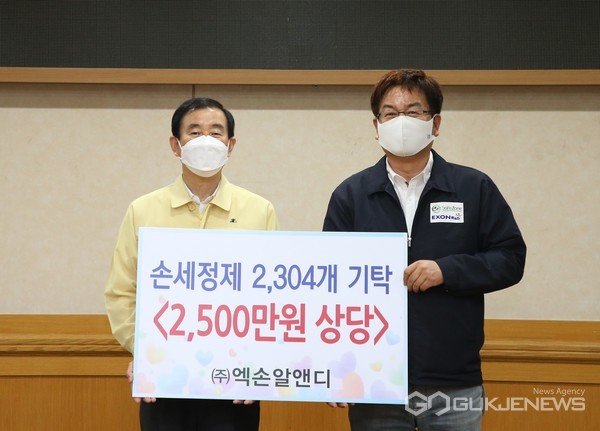 Á¶±æÇü ÃæÁÖ½ÃÀåÀº "Äڷγª19·Î Èûµç »óȲ¿¡¼­µµ ¹°Ç°À» ±âºÎÇØ ÁÖ½Å(ÁÖ)¿¢¼Õ¾Ë¾Øµð ´ëÇ¥´Ô²² °¨»çµå¸°´Ù"¶ó¸ç "¼Õ ¼¼Á¤Á¦´Â ÇÊ¿ä·Î ÇÏ´Â °÷¿¡ ¼ÒÁßÈ÷ Àü´ÞÇÏ°í ¾Æ¿ï·¯ ½Ã¿¡¼­µµ Äڷγª19 ±Øº¹À» À§ÇØ ÃÖ¼±À» ´ÙÇϰڴÙ"°í ¸»Çß´Ù.